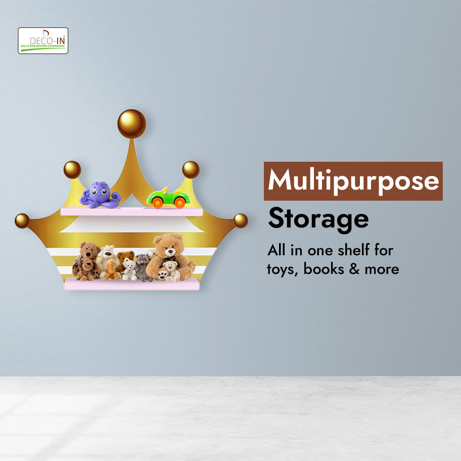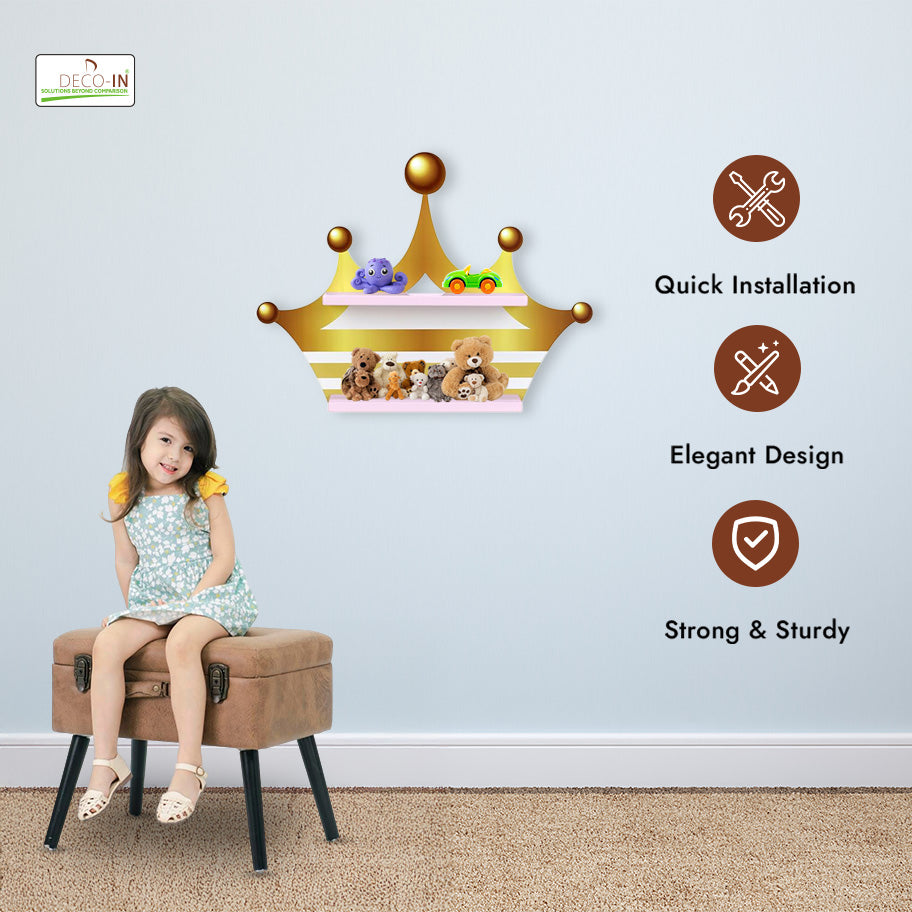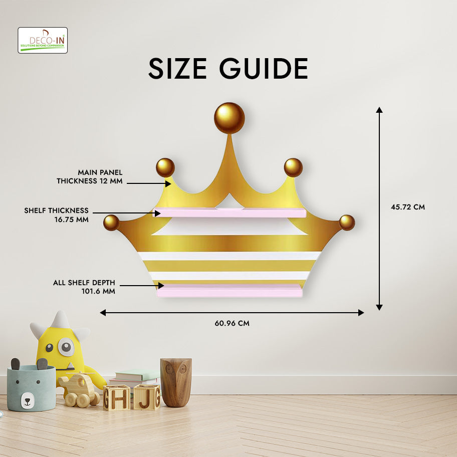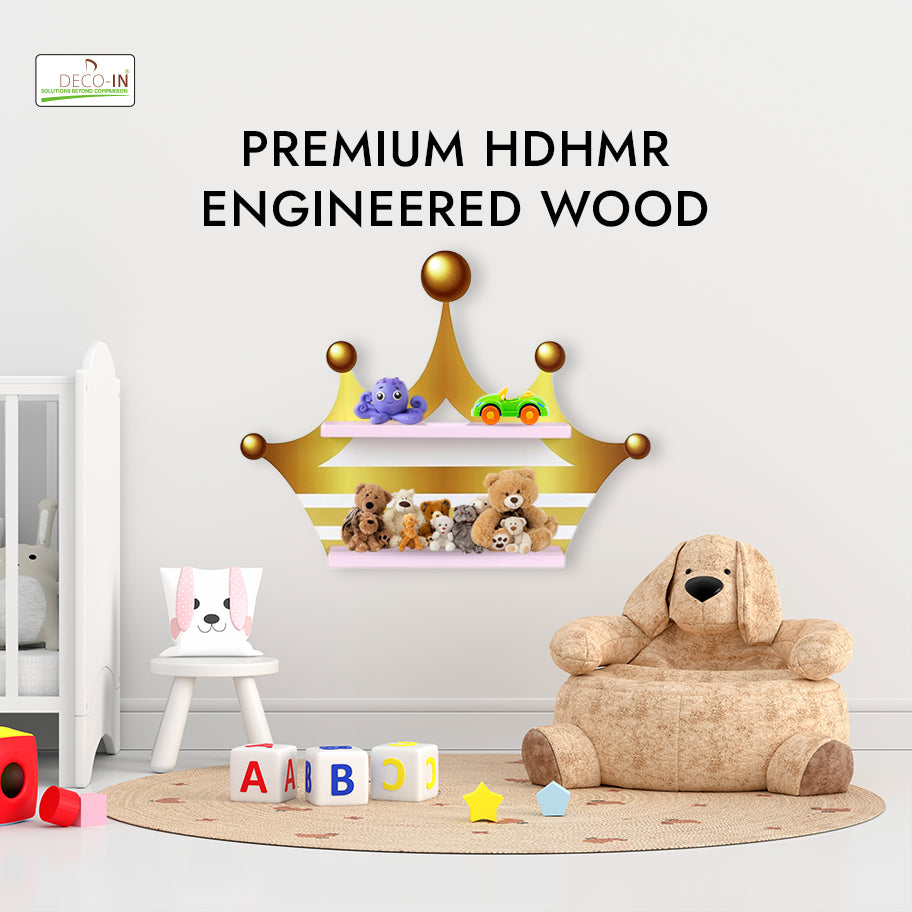 Bring a touch of royal elegance and fun to your child’s room with this Crown Shaped Kids Wall-Mounted Shelf, crafted from premium HDHMR Engineering wood and finished with vibrant UV printing. This enchanting shelf combines charming design, practicality, and durability to create a stunning focal point in any nursery, bedroom, or playroom. The crown silhouette adds a majestic, storybook-inspired element, instantly turning any wall into a regal space full of imagination. Its UV printed surface ensures bright, fade-resistant colors that remain vibrant even with daily use. Smooth, rounded edges and a non-toxic finish make this shelf safe and child-friendly. Beyond its decorative appeal, this floating wall-mounted shelf provides functional storage for toys, books, keepsakes, or decorative items, keeping the room organized and stylish. A perfect blend of imagination, safety, and premium craftsmanship, the Crown Shelf is more than just storage — it’s a royal décor statement that inspires creativity and adds charm to any kid-friendly space.