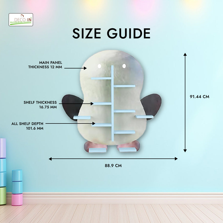 Bring a touch of fun and whimsy to your child’s room with this Penguin Shaped Kids Wall-Mounted Shelf, crafted from premium HDHMR Engineering wood and finished with vibrant UV printing. This charming shelf combines playful design, practicality, and durability to make organizing a child’s space a joy. The penguin silhouette adds a delightful, storybook-inspired element to nurseries, bedrooms, or playrooms, instantly making the wall a focal point of fun and imagination. Its UV printed surface ensures bright, fade-resistant colors that stay vibrant even with daily use. Smooth, rounded edges and a non-toxic finish make this shelf completely safe for children. More than just a decorative piece, this floating wall-mounted shelf provides functional storage for toys, books, keepsakes, or decorative items, keeping the room organized and stylish. A perfect combination of imagination, safety, and premium craftsmanship, the Penguin Shelf is more than storage — it’s a magical décor statement that sparks creativity and adds personality to any kid-friendly space.